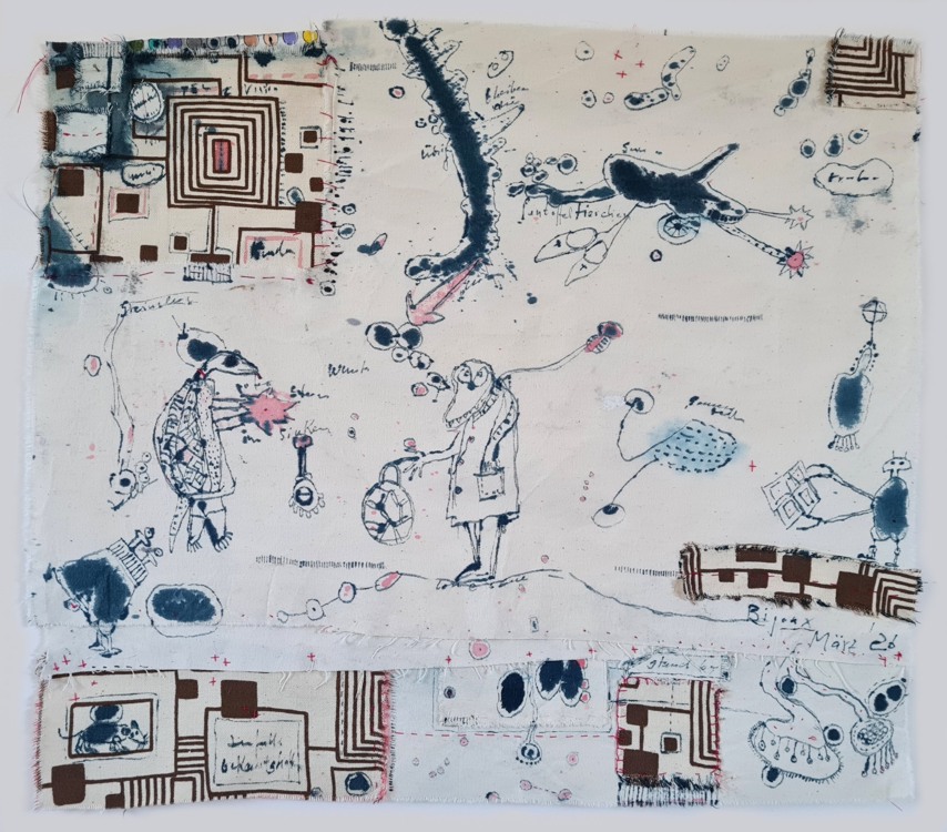 Unbeirrt und rätselhaft treiben sie ihr (Un)wesen auf den ihnen dargebotenen Untergründen meist textiler Art.