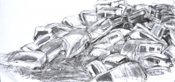 Bei den Offenen Ateliers 2026 zeige ich Arbeiten, die in den letzten beiden Jahren entstanden sind. Der Schwerpunkt liegt auf Kohlezeichnungen. Ich interessiere mich für Energie- und Kraftzentren. Wie lässt sich geballte Energie mit Linien auf einem Papier darstellen? Energieverdichtung soll sichtbar und spürbar werden auf so einem fragilen Träger wie Papier.